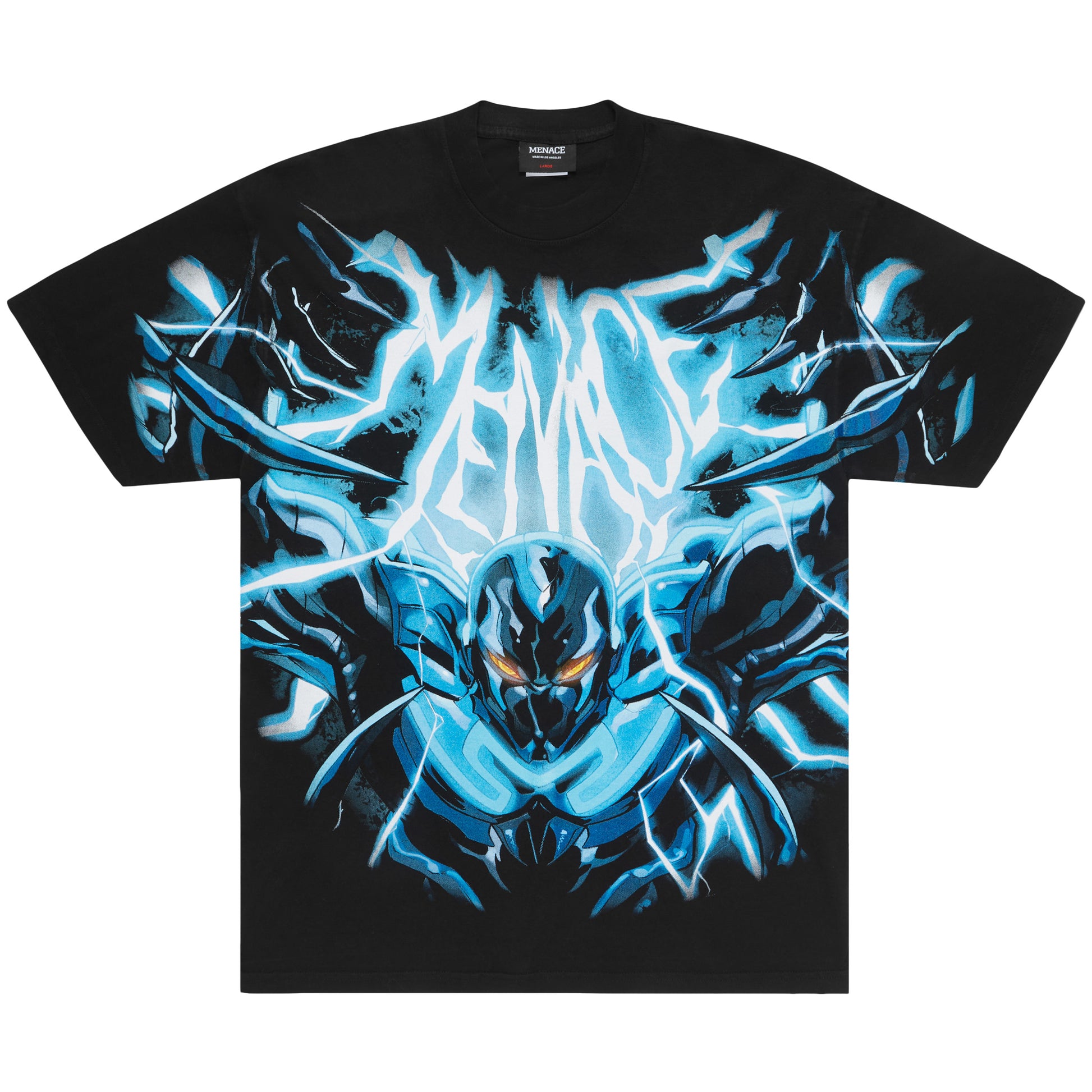MENACE x Blue Beetle graphic t-shirt. Made in collaboration with the DC Comics & Blue Beetle.