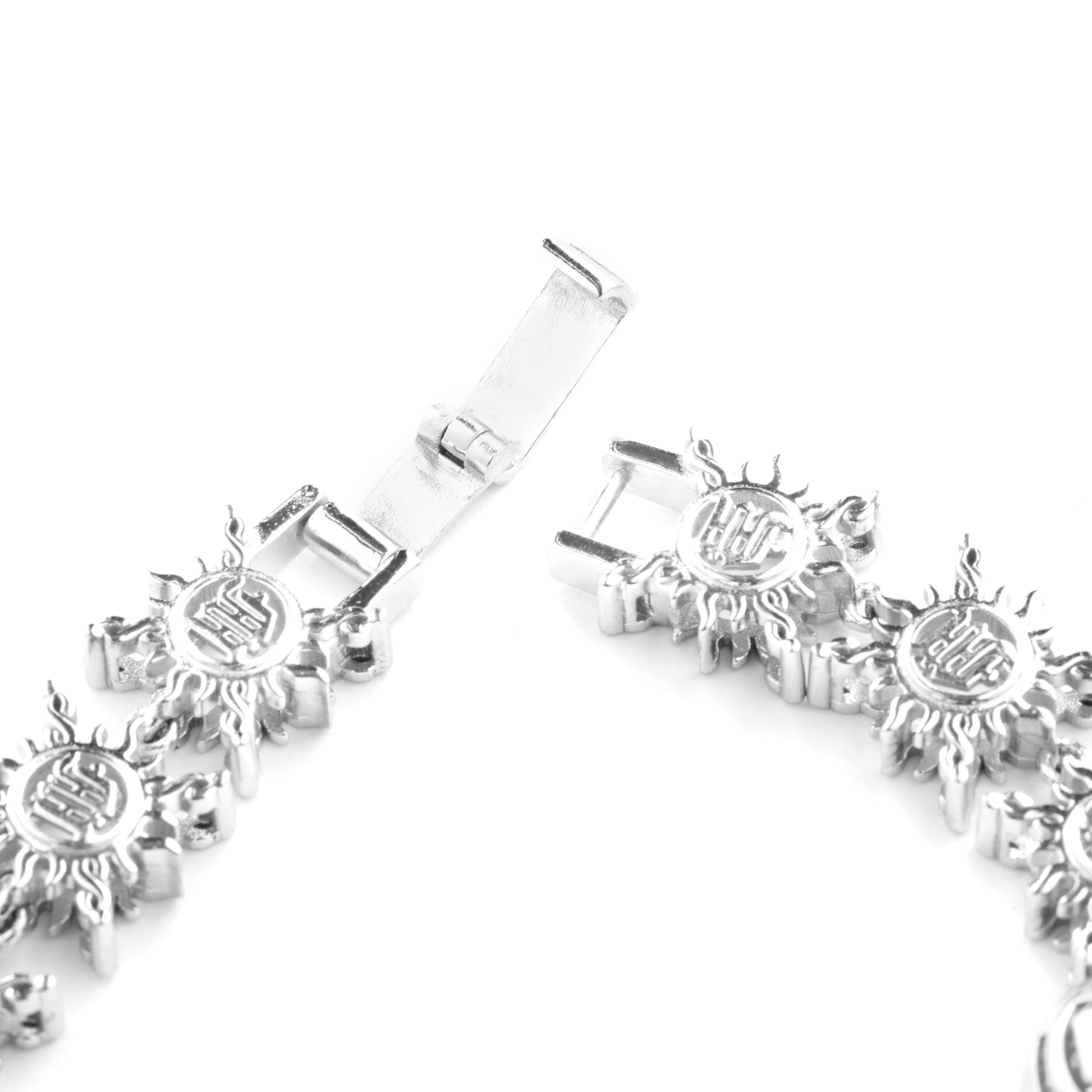 - Custom MENACE monogram logo pendant links.
